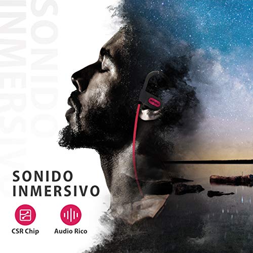 【IPX7 Impermeables Auriculares Bluetooth Deporte】Mpow IPX7 Nanocubrimiento resistente al agua que protege eficazmente los auriculares deportivos contra el sudor y garantiza una vida más garantizada, ideal para correr, trotar, hacer excursiones, yoga, ejercicios, gimnasio, ejercicio, viajar, etc.